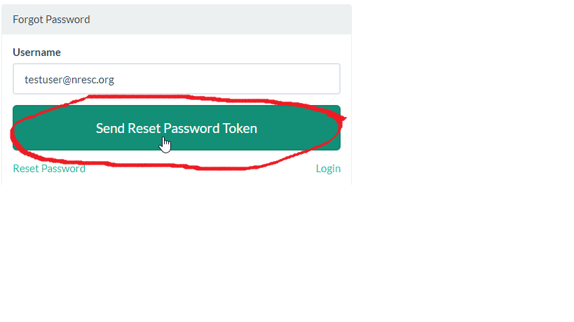 - Type in your nresc.org email address in the Username field, then select the “Send Reset Password Token” button. This will send an email to your account with the link to reset your password. (Note: Your username will always be your NRESC email address.)