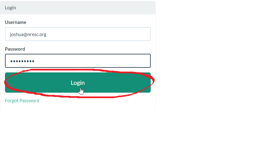 - When you log in for the first-time or if you have forgotten your password, begin by resetting your password. Select “Forgot Password”. If you already know your username and password, proceed to Step 3. (Note: Your username will always be your NRESC email address.)