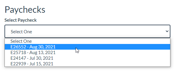 - Choose “Select Paycheck” drop-down box, then select the stub you would like to view. In the preview box where your stub is displayed you will have the option to download or print your pay stub. Stubs are only available from 7/15/2021 forward.